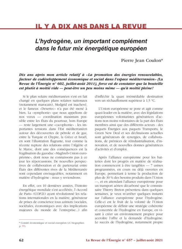 السيد بيير – جان كولون: الهيدروجين ، مكمل مهم في مزيج الطاقة الأوروبي المستقبلي